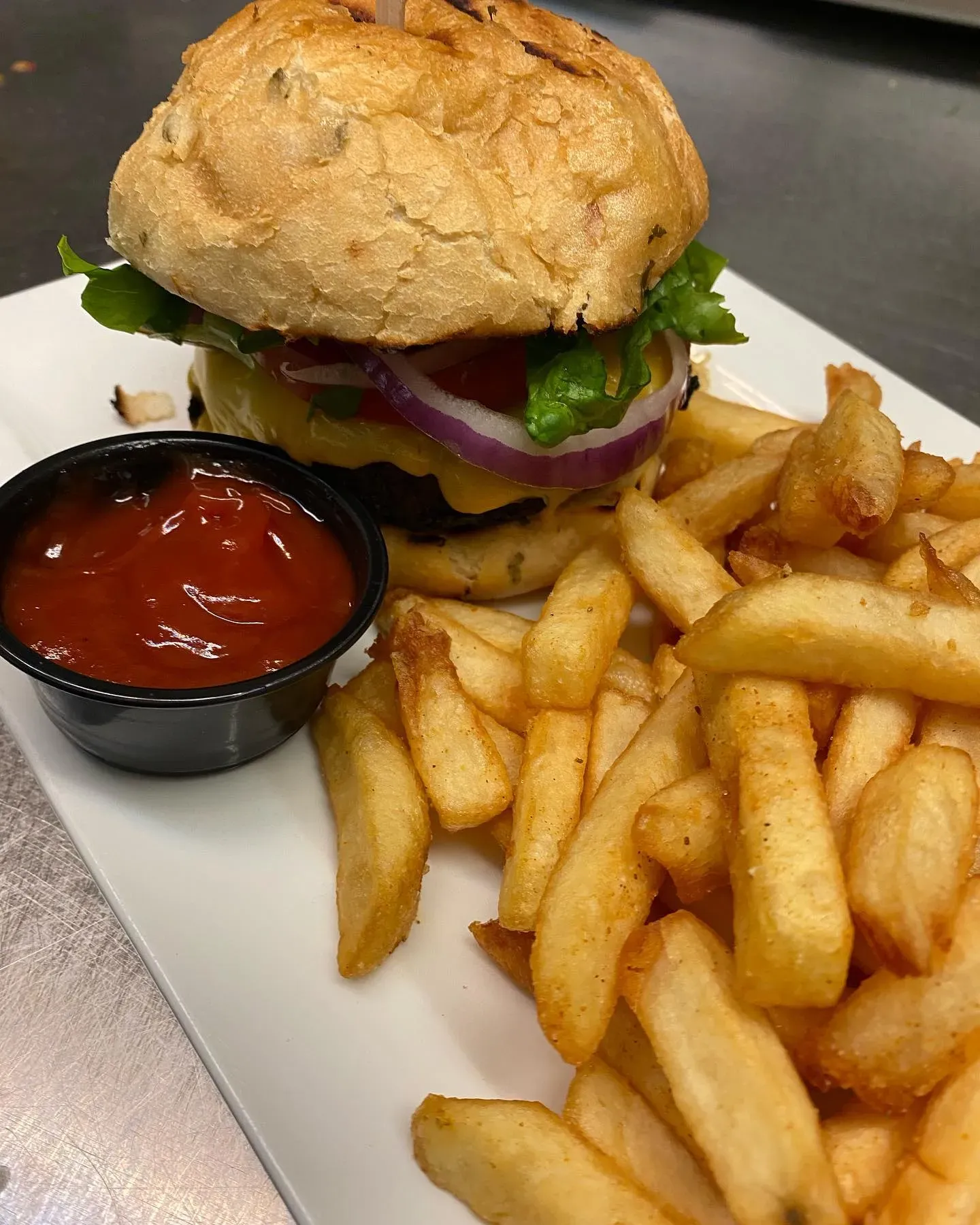 The Judge & Jester is a cozy, welcoming pub. The pub serves a broad and creative menu of classic pub fare with a twist — from burgers, tacos, wings and sandwiches to fish & chips, soups, comfort dishes, and vegetarian-friendly options.